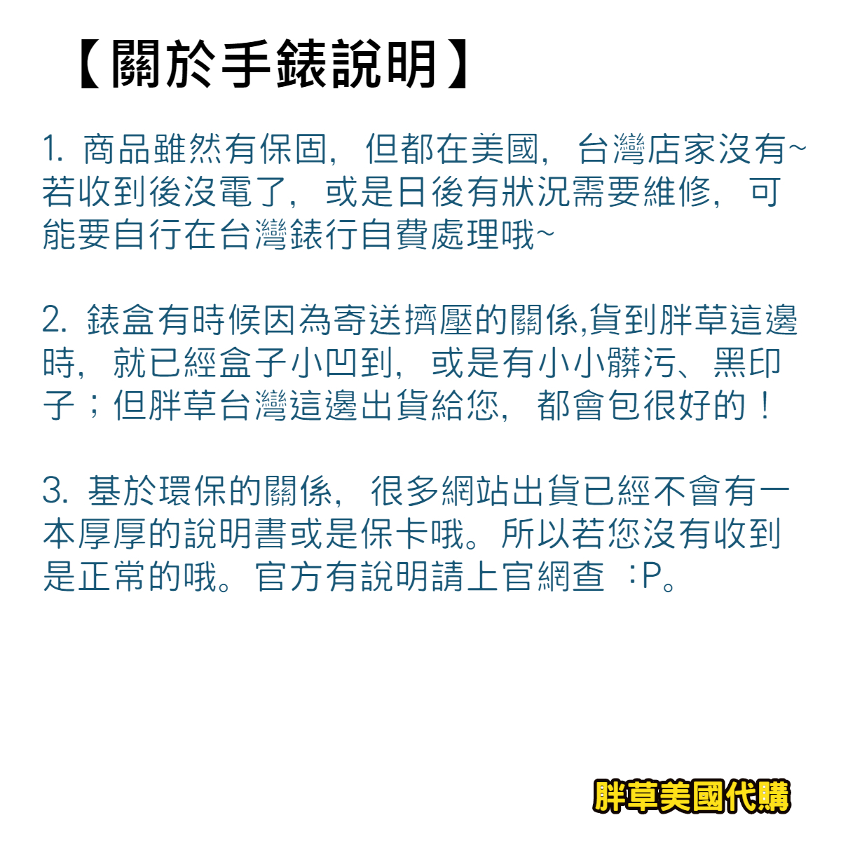 若使用後商品有狀況需要維修,可能要自行在台灣錶店處理喔~ 請見諒~ 介意者請千萬不要下單喔~
